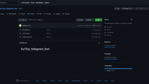 В прошлой статье мы подготовили рабочую область, для работы с Python. Сейчас напишем простого echo телеграм бота на Python с использованием aiogram пула и загрузим проект в GitHub. В последствии, я думаю переписать бота на webhook, но это позже, когда сделаю свой сайт и решу куда есть возможность загрузить бота. Пока работаем с aiogram. 1. Пишем echo бота в телеграм. Вы должны написать @BotFather в telegram, ввести имя бота и получить токен для доступа к API. После того как получили API переходим к проекту...