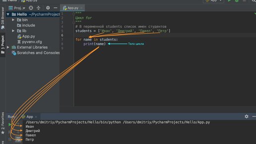 Циклы while и for. Как работает цикл for в python