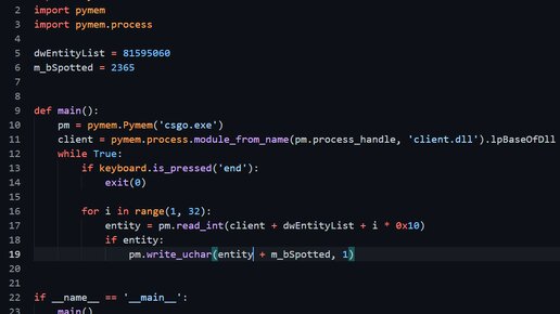 В настоящее время множество людей играют в cs:go, но некоторые плохие люди используют читы для превосходства над другими игроками. В данной статье мы покажем вам как они это делают. Можно сказать это один из самых простых способов создания чита. В пример я приведу радар хак. Disclaimer: всё что вы здесь увидите показано в познавательных целях. Автор не несёт никакой ответственности за применение данного материала, а также осуждает это!!! Для начала установим библиотеку pymem