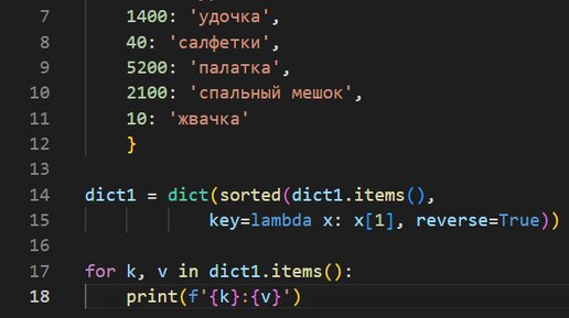 Для сортировки используем функцию sorted(). Чтобы сортировка происходила по значениям, а не по ключам - используем лямбда-функцию. Сортируем в порядке возрастания по значению: Теперь отсортируем в порядке убывания по значению: Сортировка в алфавитном порядке по значению: И наоборот: Теперь сортируем по увеличению...