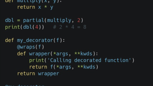 Это модуль для высокоуровневых операций над функциями. С его помощью вы можете кэшировать значения, разделять функции и создавать декораторы. @cache — замена @lru_cache(None), добавленная в Python 3.9. Декоратор, позволяющий кэшировать результат работы функции. partial() — возвращает функцию, при вызове которой передаются заранее переданные параметры. @wraps — определяет функцию как декоратор, за счёт реализации важных атрибутов: __name__, __module__, __doc__...