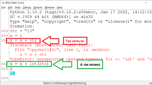 Хотя в Python типов данных как бы нет, но на самом деле они есть. Просто их не надо указывать при объявлении переменных. Но при выполнении каких-либо операции с переменными разных типов можно получить ошибки, особенно если вы в ходе разработки забыли, какая переменная имеет какой тип. Кстати, ранее я рассказывал о том, как узнать тип переменной. Исходя из вышесказанного становится ясно, что Python, хотя и позволяет иногда совмещать переменные разных типов в одном выражении, всё же требует, чтобы эти типы были совместимы...