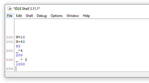 Интерактивная консоль Python IDLE является удобным инструментом для начала обучения языку. С её помощью удобно изучать функции языка. Устанавливается она вместе с самим Python и написана она тоже на Python. Есть в ней свои скрытые возможности делающее её использование более удобным, хотя и не совсем очевидным. Так, например, результат вычисления инструкции, которая была выполнена в интерактивно консоли последней, сохраняется в переменной "_" (один символ подчеркивания) Это позволяет использовать результат не вводя его снова в консоли, а введя только этот символ (рисунок 1)...
