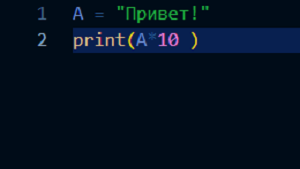 Всем привет! Задача: Вывести строковое выражение "Привет!" 10 раз подряд Решение: Для решения такой простой задачи нам понадобится использовать знак * (звездочка). * (Звездочка) при работе с числами выполняет операцию умножения. А при работе со строками выполняет операцию повторения. Посмотрим, как выглядит решение данной задачи в коде: Получим вывод: Задача решена. Еще раз посмотрим как этот знак в Python программировании выполняет арифметическое действие (умножение), если видит, что оба значения...