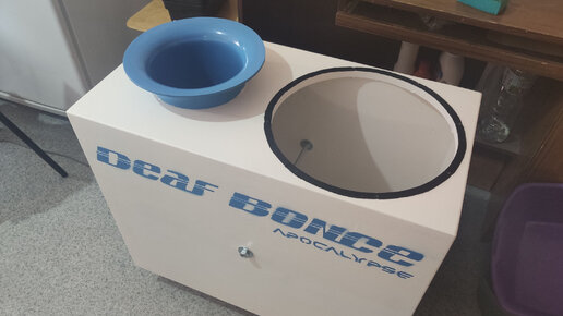 Осталось сделать В качестве порта будет использоваться 200-я канализационная труба длинной 50 см и раскрывами с двух сторон. Из-за раскрывов поместить трубу в короб возможности нет, по этому её необходимо распилить, а затем склеить внутри короба. После распила трубы начинаю подготовку к покраске. Сделал матовую поверхность 120-й наждачной бумагой и обезжирил поверхность, за одно необходимо покрасить болты которые будут держать динамик. Наносил краску в 3 слоя с межслойной сушкой 15 минут. Пока подсыхала краска установил забивные мебельные гайки м4...