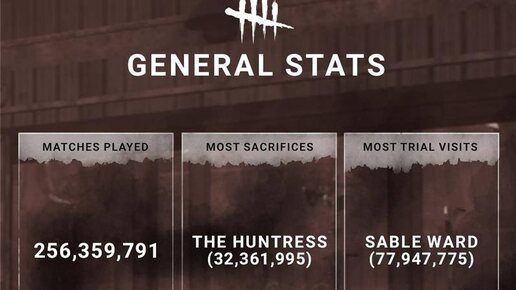 Сыграно матчей 256,359,791 Больше всего играли — за Охотницу 32,361,995 На первом месте по выжившим — Сейбл Уорд 77,947,775 🔪 Подписаться | ⚡️Голосовать #deadbydaylight #дбд #dbd #news #dbdnews #новостидбд...