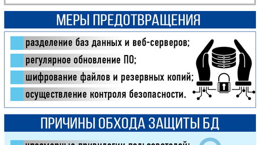 Обязательным этапом при работе с базами данных является их защита. Такая защита является фактором коллективной безопасности, нацеленным на предотвращение кибератак и доступа третьих лиц к информации. Меры по защите БД объединяют методы, процессы и инструментарий, создающие надежное управление информационными потоками. Для эффективной защиты следует: Контроль обязателен, поскольку новые патчи содержат закрытые «дыры» и исправленные ошибки системы. Злоумышленники используют для проникновения в БД слабые...