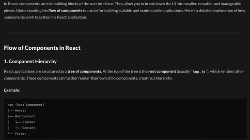 👩💻 Эта статья обсуждает ключевые принципы работы компонентов в React, такие как однонаправленный поток данных, подъем состояния (lifting