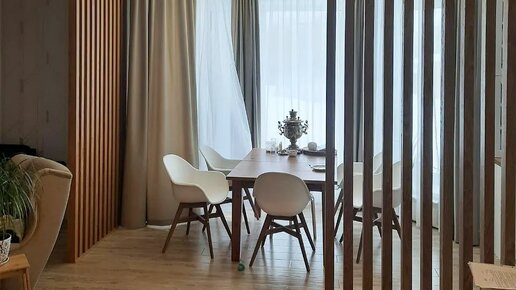 Для начала давайте разберемся, для чего вообще может понадобиться перегородка из реек (реечная перегородка) на кухне? Самая распространенная задача для такой перегородки - это отделить обеденную зону или зону отдыха от зоны готовки. Этот вариант особенно востребован при евро планировке (евро-однушки, евро-двушки, евро-трешки), когда от застройщика в квартире предусмотрена большая зона кухни-гостиной без разделительной стены, но визуально хочется сделать зонирование. Реечная перегородка в этом случае...