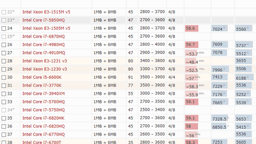 Рейтинг процессоров