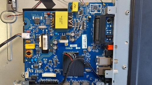 Всем здравствуйте! Сегодня у нас на ремонте телевизор DEXP H32E8000Q с диагнозом говорит но всё темно :) Его уже пару раз ремонтировали в сельской мастерской, а сейчас привезли к нам. Итак посмотрим что там с ним. И ещё будет один замер который не давал покоя , думаю многим :) А каком замере идёт речь я напишу ниже. Фото внутряночки майн плата cv358h-t42 Для приличия замерил напряжение на разъёме подсветки. В момент включения возникает всплеск до 65 вольт и плавное падение. Лезем в корыто. А там вот такое дело...