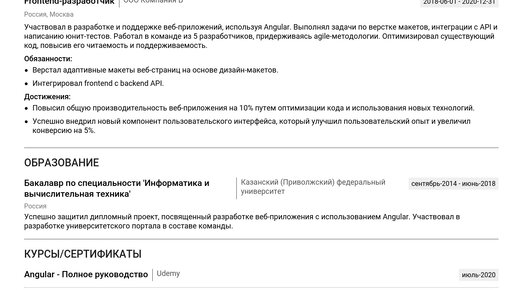 Пример резюме frontend-разработчика (Angular) 2025 - готовые примеры