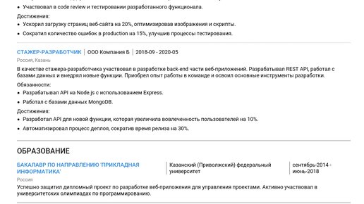 Резюме Junior Web-разработчика 2025: Как Составить + Образец