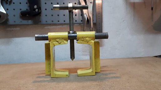 Всем привет👋😉 На этот раз у меня созрела идея сделать довольно простой и к тому же полезный инструмент для мастерской из обрезков металла, которым давно не решался найти применение! А теперь по порядку, какие детали будут использоваться для самоделки! - отрезок швеллера на 80мм, длина ~ 100мм - четыре отрезка полдюймовой трубы - болт М12 с полной резьбой, длина ~ 100мм. - две гайки М12 ( можно заменить на одну длинную ) - две шпильки М16 от ГБЦ ( за неимением, вполне можно заменить стальным кругом на 16мм ) Собственно все основные материалы...