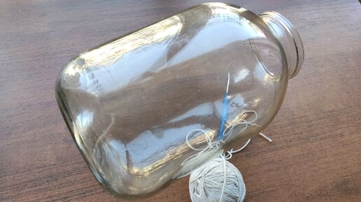 Связала старую забытую авоську для 3 литровой банки как в СССР. Теперь с ней хожу за домашним молоком