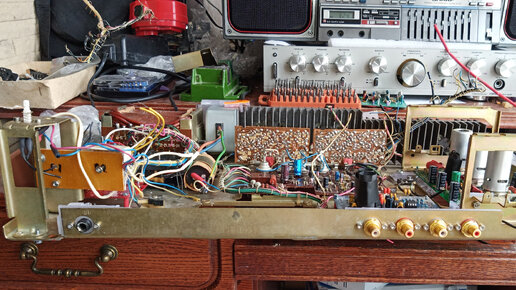 В процессе разборки и выбраковки элементов Арктура возникла идея о проетке "по мотивам" легендарного аппарата. В мусорку полетели DIN-разъемы, шнурок питания заменен на пионеровский блок подключения силового кабеля. И пошло, поехало. Родной предусилитель и фонокорректор мне сразу не понравились. С коммутациями тоже не все было понятно. К чему пришел? Остается усилитель мощности и трансформатор. Блок питания на плате УМ снится мне по ночам, но я сдерживаюсь...пока. Рядом с родным трансом прописался тор лампового фонокорректора...