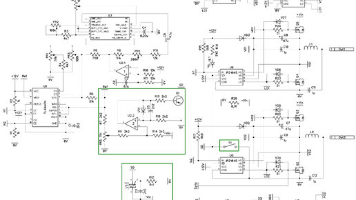 В модифицированной схеме инвертора (рис.9 или упрощенная схема на рис.10) в качестве драйверов MOSFET могут быть использованы микросхемы IR2104 (U5, U6) или IR2186 (U7, U8) в корпусах (DIP-8/SOIC-8) - вместо IR2110/IR2113 (DIP-14/SOIC-14). Это может упростить компоновку...