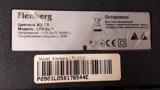 Ремонт/модернизация TV Elenberg LTV-2231.