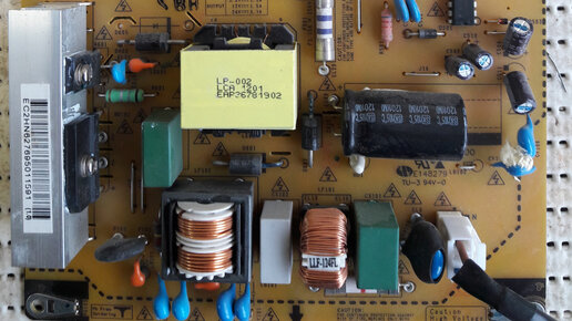 а точнее его блок питания. Модель eax64604501 (1.5) с дефектом не включается! Фото блока ниже...