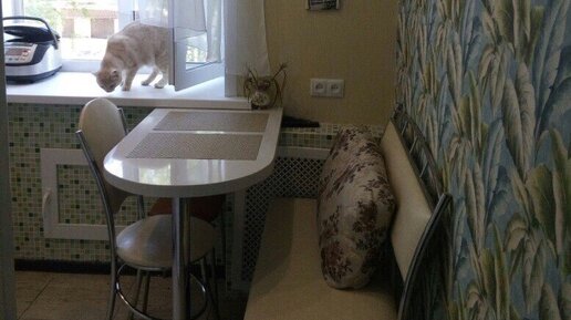 Секрет этой кухни очень прост! Заключается он в глубине столешницы! Стандартная столешница имеет ширину 60 сантиметров. В данном случае ее упилили, шкафчики сделали менее глубокими, всего 50 сантиметров. За счет этой маленькой экономии пространства в 10 сантиметров, влезла посудомойка и диванчик. Посмотрим фото кухни Парочка фоток для затравки =)