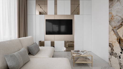 Шкаф для одежды с ТВ зоной. Продуманная система хранения и оформление фасада. Фото В этой квартире было необходимо спроектировать много мест для хранения, и в кухне-гостиной из-за большого количества окон оставалось два места для шкафа: напротив окна и рядом с ним. Если бы мы поставили шкаф напротив окна, комната стала бы гораздо уже. Поэтому мы расположили его рядом с окном, заняв всю стену, но при этом использовали место даже за телевизором. Привет! Меня зовут Карен Карапетян, я — архитектор и интерьерный дизайнер...
