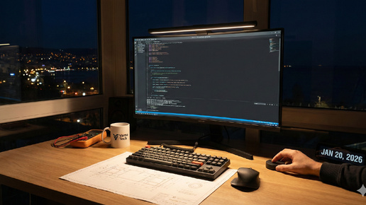 Автор: Александр П., системный архитектор. Варна. Работаю иногда по ночам, ненавижу блики и уставшую сетчатку. Коллеги, если вы работаете с текстом, кодом или графикой больше 4 часов в день, вы знаете это чувство: "песок" в глазах, тяжесть в висках и желание выкрутить яркость монитора на минимум. Проблема не в мониторе. Проблема в освещении. Потолочная люстра создает тени. Настольная лампа занимает место и, самое страшное, бликует в экран, создавая засветы, из-за которых вашему мозгу приходится напрягаться, чтобы считать информацию...
