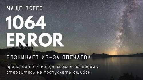 Вам когда-нибудь приходилось видеть ошибку 1064 при работе с MySQL? Причем она указывает на некие синтаксические ошибки в SQL запросе, и эти ошибки могут быть совсем неочевидны – подробнее расскажем ниже...