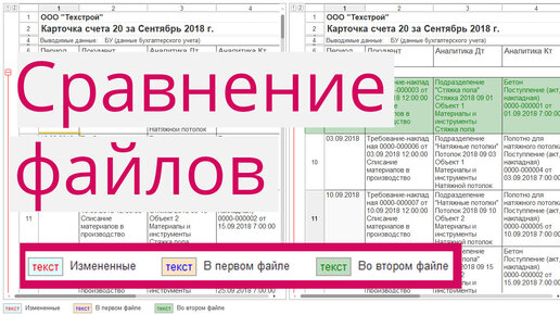 В каждом по 10000 страниц. Сможете? Или Вы всё еще крыжите?! Речь пойдет о функции "Сравнение файлов". В чём она заключается? Из 1С можно сохранять отчеты в формате mxl, а затем два отчета сравнивать между собой. 1С определяет и подсвечивает строчки с данными, которые отличаются друг от друга в файлах и выделяет ярким цветом те строчки, которые в одном отчете есть, а в другом вообще отсутствуют, а также выделяет данные, которые отличаются...