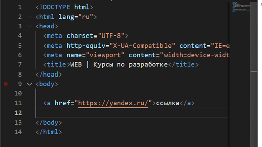 Сейчас мы с вами будем разбираться со ссылками. Ссылки являются теми элементами, которые делают из интернета интернет. Нажимая на ссылки, мы можем переходить с одной страницы сайта на другую. Если бы их не было - интернет был бы просто набором страниц, никак не связанных друг с другом. Ссылка создается с помощью тега <a>. В этом теге обязательно должен быть атрибут href, в который следует записывать адрес той страницы, на которую ведет ссылка. Давайте для примера сделаем ссылку на Яндекс. Для этого...