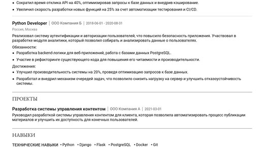 Пример резюме Python backend developer 2025 - Как составить