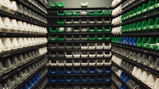 Стеллажи для склада с пластиковыми ящиками от производителя