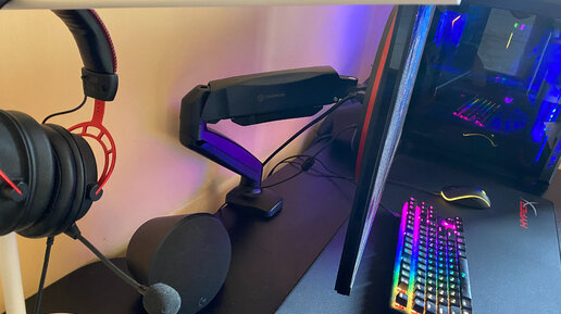 У меня на столе стоит 27 дюймовый монитор с ножками, которые занимают много места. Вроде бы стол не маленький, но всё равно ножки меня бесят, мешают пододвинуть коврик. 😬😈 Дырявить стену и вешать монитор мне не хотелось. Недавно друг посоветовал купить кронштейн, который крепится к столу и не занимает много места, легко настраивается и двигается во всех возможных плоскостях. Идеальный вариант для меня, поэтому я сразу же заказал его на Маркете с доставкой. 🛒 Кронштейн для монитора Onkron G80 Стильный кронштейн чёрного цвета, как мой стол...