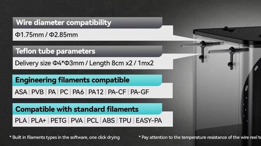 ! Продам сушилку для пластика SUNLU FilaDryer E2. На 2 катушки, греется до 110 градусов. Подходит для ABS, ABS-CF, ASA, PC, огнестойкий ПК, PC-ABS, PC-PBT, CoPA, PA6-GF, PA6-CF, PA12-CF, PA612-CF, PA12 и т...