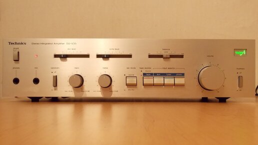 Technics Su-V35 - простенький усилитель на микросхеме stk2068-II. Попал ко мне с его родным эквалайзером sh-8045, который я тоже сфотографировал изнутри и снаружи, до кучи. Кстати, полосы эквалайзера начинаются от 16 Гц, а заканчиваются 32 кГц, как ни странно...