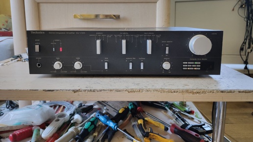 Technics SU-V505. Усь технарь, на освежающих процедурах, чистка релюшки, промывка кнопок, крутилочек. Безовый технарь, приправленый маркетологами, чего только не придумают, Computer drive это прям звучит мощно.🤪Не плохо было бы, что бы и сам усилитель звучал поинтереснее, но нет, обычный технарь, спасибо что не на STK, а на "рассыпухе", а то вообще бы был мрак.😎Хотя как среднячок на повседнев пойдёт, вполне слушабелен, попадались конечно...