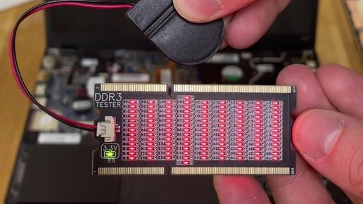 При ремонте ноутбука, особенно когда он не включается порой требуется выяснить не связана ли неисправность с оперативной памятью или его слотом. В таком случае, частично его разобрав и добравшись до разъема ОЗУ. Можно воспользоваться заведомо исправной оперативкой и попробовать запустить лептоп. В качестве альтернативы хорошо подойдет данный тестер, позволяющий проверить каналы связи между слотом оперативной памяти DDR3 стандарта SO-dimm и процессором. Замечу, что он идет в комплекте с инструкцией и работает от батарейки CR2032 находящейся в выведенном отдельно корпусе...