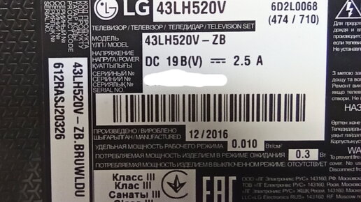 Телевизор LG 43" 43lh520v неисправность: нет изображения