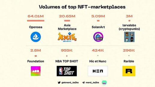 Мы все любим деньги. А деньги любят NFT. В NFT много деняяяг…и даже сейчас, после обвала рынка. Поэтому, мы тебе тут статейку перевели (написали своим языком) про нфтшные маркетплейсы, приятного аппетита. Давай начнемс с азов. NFT — это not-fungible tokens (невзаимозаменяемые токены). Да, это те самые картинки, которые покупают за бешенные деньги. Но, если быть точнее, это не всегда картинки. Порой это может быть аудио/видео контент. NFT существуют уже несколько лет, взять хотя бы 2017 год, когда бесплатно можно было забрать себе криптопанка или криптокотенка...