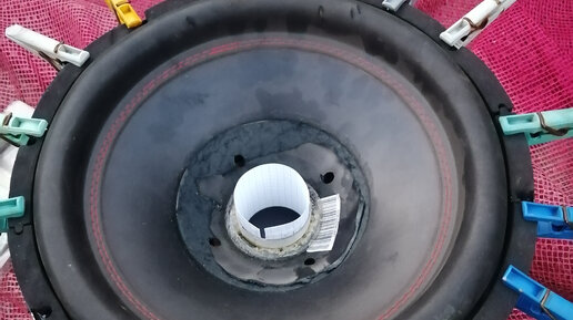 Здравствуйте, уважаемые подписчики и гости канала. Хочу рассказать, как я восстановил сабвуфер Pride. Неисправность - слетела катушка. Сначала откручиваю клеммы динамика. Феном слегка нагреваю колпак, аккуратно поддеваю ножом и прохожу по периметру. Таким же образом отклеиваю подвес, только здесь уже я грею температурой 350 градусов. Поддеваю и отклеиваю центрирующую шайбу. Как видно, вся катушка осталась внутри. Катушка сидела там очень плотно, постепенно, виток за витком еле достал. Основание для катушки оставляю старое...