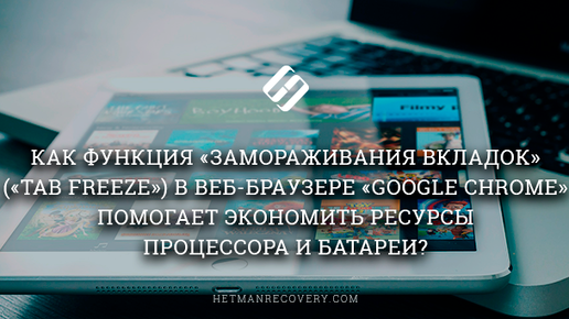 Полную версию статьи со всеми дополнительными видео уроками смотрите в источнике: https://hetmanrecovery.com/ru/recovery_news/how-does-freeze-tabs-feature-in-the-google-chrome-web-browser-help-save-processor-and-battery-resources.htm Читайте о функциях «Google Chrome» для «замораживания вкладок», которые приостановят неиспользуемые вкладки. Как снизить загрузку процессора, повысить скорость работы браузера и продлить время автономной работы ноутбука или планшета. Введение Веб-браузеры обладают...