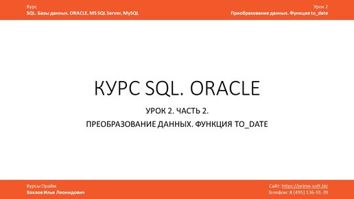 Курс SQL. Базы данных. ORACLE. Преобразование данных. Функция to_date
