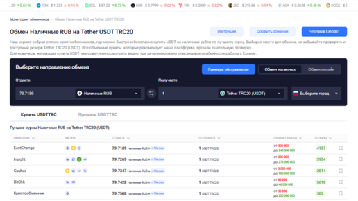 Купить USDT TRC20 за рубли в России стало проще благодаря современным обменным платформам и криптовалютным сервисам. Многие пользователи ищут быстрые, надежные и выгодные способы приобретения Tether в сети TRC20, чтобы проводить транзакции с минимальными комиссиями и максимальной безопасностью. Сегодня доступно несколько проверенных обменников, которые работают круглосуточно и предлагают удобные инструменты для покупки криптовалюты. Если вы хотите купить USDT TRC20 за рубли без комиссии, важно ориентироваться на актуальные курсы и надежность сервисов...