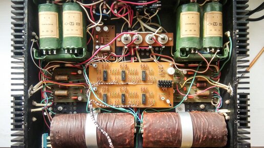 В этой статье речь пойдет об усилителе, сделанном в конце 80-х годов моим отцом. В те годы местные умельцы, по просьбе отца, нарисовали для него схему усилителя, по которой он развел печатную плату и впоследствии собрал усилитель и оформил его в виде законченного устройства. Несколько слов о самом усилителе. Корпус сделан из прочной стали толщиной 1 мм. Передняя панель - из алюминия толщиной 5 мм. Боковые стенки представляют собой радиаторы, фрезерованные из цельного куска алюминия. Усилитель весит 10,8 кг...