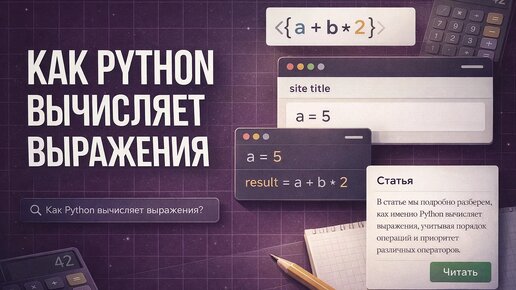 Когда люди только начинают знакомиться с Python, они часто воспринимают код как набор команд: написал → запустил → что-то произошло. Но внутри Python всегда делает одну и ту же вещь - вычисляет выражения. И именно понимание этого момента сильно упрощает работу не только с кодом, но и с любыми цифровыми инструментами. В Python выражение - это любая конструкция, которая вычисляется в значение. Например: 5 + 3 a > 10 price * quantity has_access and is_admin Python всегда берёт выражение, считает его, и получает результат: число, True / False, строку и т...
