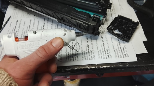 Принесли на заправку картридж от довольно нового аппарата: HP w2030a, или же 415a. Используют его в аппаратах LaserJet M454/ MFP M479. По словам клиента, картридж заправляли в другом сервисе, а потом он "развалился" у него у руках, когда стал доставать дома. Решил принести к нам. Это было мудро! :) Картридж перебрали, прочистили от остатков тонера. Чтобы картридж данной модели не развалился у клиента в руках, необходимо при финальной сборке подклеить боковину...