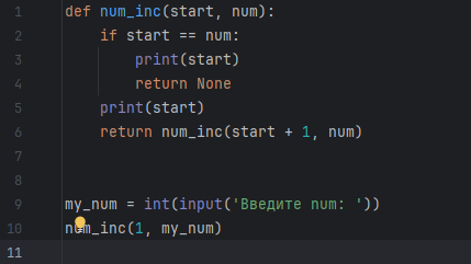 Вдохновившись мотивацией Антона, ваш друг тоже решил поставить перед собой задачу, но не сильно связанную с математикой, а именно: написать функцию, которая выводит все числа от 1 до num без использования циклов. Помогите другу реализовать такую функцию. Написав аналог функции zip на собеседовании, вы вспомнили, что этот код можно сделать даже лучше, и резко вырвали листок с кодом из рук работодателя, оставив его в недоумении. Напишите функцию, которая будет являться аналогом функции zip и сделайте так, чтобы программа работала с любыми итерируемыми типами данных...