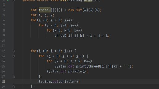kis kis4 года назадПодписатьсяКак создать матрицы в Java ?Матрицы часто встречаются в заданих, создать их легко и в этом примере мы создадим трехмерный массив и заполним его... Что нам это нам даст ? Полный код программы public class Test {