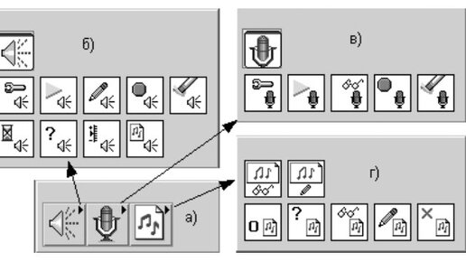 Функции записи и воспроизведения звуковых сигналов позволяют считывать (вводить) сигнал со входа звуковой карты в массив данных и записывать (выводить) сигнал из массива данных на выход звуковой карты, записывать данные в звуковой файл с расширением .wav или считывать такой файл, а также воспроизводить звуковой файл с расширением .wav на выходе звуковой карты. В палитру функций (рис. 1а) входят подпалитры функций вывода (Output) (рис. 1б), ввода (Input) (рис. 1в) и функции записи-считывания звуковых файлов (File) (рис...