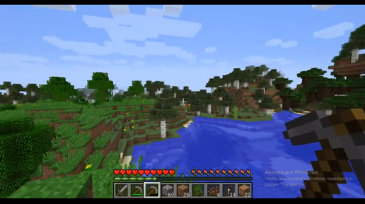 Выживаем на хардкоре 100 дней. Добываем первое дерево. Плаваем с рыбками. Крафтим доски, верстак, делаем кирку и меч. Охотимся на свинок, уталяем голод. Добываем камень, крафтим печку. Делаем топор. Ищем овечек, крафтим кровать. Вечереет. Строим простейший дом, чтобы пережить эту ночь. Новое достижение: "Спи, моя радость, усни"...