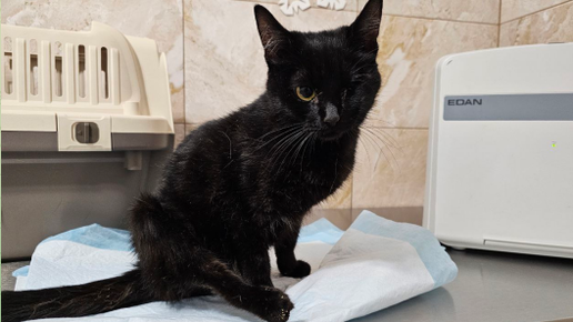 г. Смоленск. В приюте живет порядка 180 котиков. У всех непростая судьба, есть инвалиды: слепые, слабовидящие, с хроническими заболеваниями и травмами позвоночника. Эта девочка тоже особенная, она не может жить без помощи человека. Волею судьбы черная кошечка попала ко мне в приют. Она - спинальница, это значит, что ей надо спускать мочу, сама она этого сделать не может. Если этого не делать - долго она не проживет. Видит она одним глазом, потому что...на фото все видно((( На дня я увидела пятно красного цвета - испугалась, думала, что у нее воспаление матки...